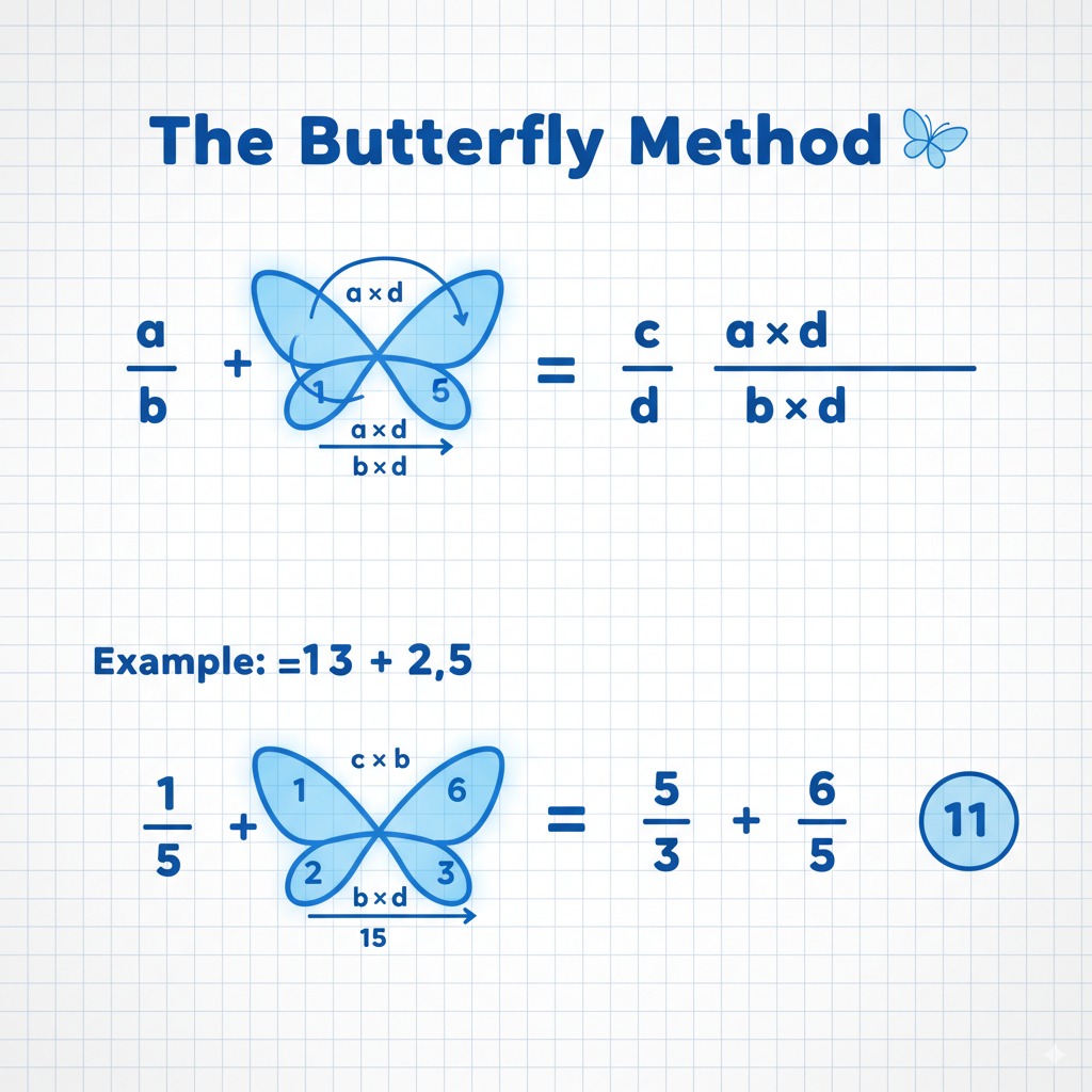 Method 1: The “Butterfly” or “Cross-Multiplication” Method (for two fractions)